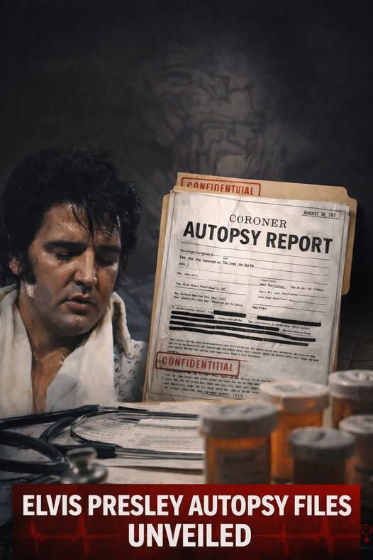 For nearly half a century, the last chapter of Elvis Presley’s life has been wrapped in velvet myths, softened memories, and comforting half-answers. The world was told a simple story—one that allowed grief to settle without digging too deep. But history has a way of refusing silence. Now, after decades sealed away from public view, the secret autopsy records of Elvis Presley have surfaced, and what they reveal is not the gentle ending many believed. It is a troubling, deeply human account that forces fans—especially those who grew up with his voice as the soundtrack of their lives—to confront a far darker truth about the King of Rock and Roll.